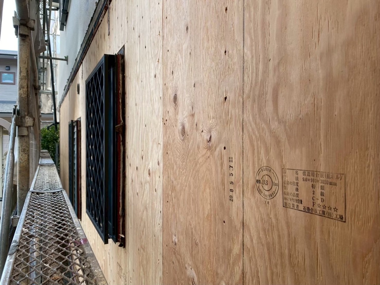 2×4で構造用合板がボロボロだったので貼ります。