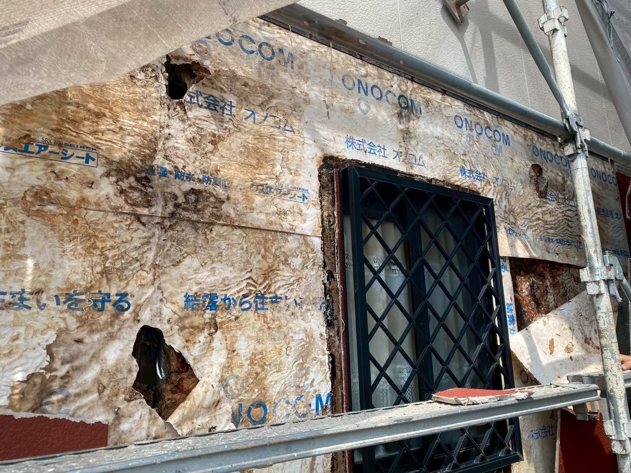 中間の幕板の劣化が見受けられました。カバー工法もご検討の中にはありましたが、まずは構造の確認で、柱や内部木部の状態を把握することになりました。