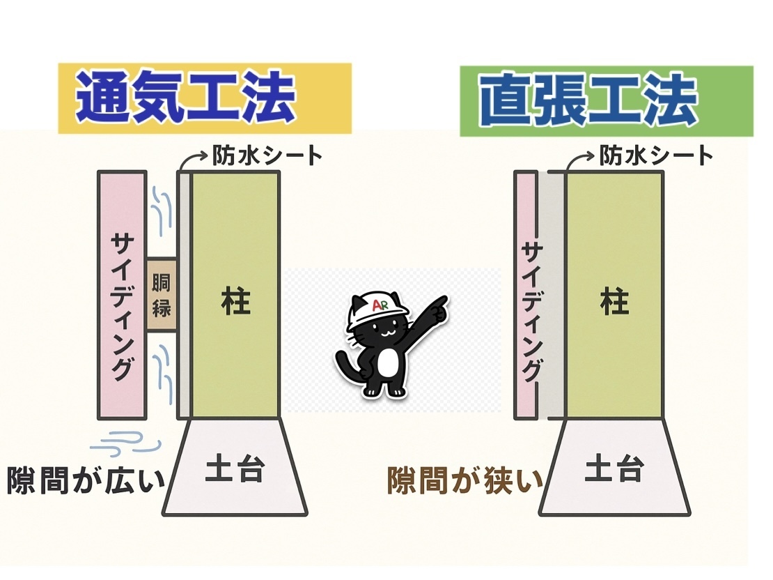 建物が「直張工法」か「通気工法」かで家や外壁の耐久性が大きく変わります。