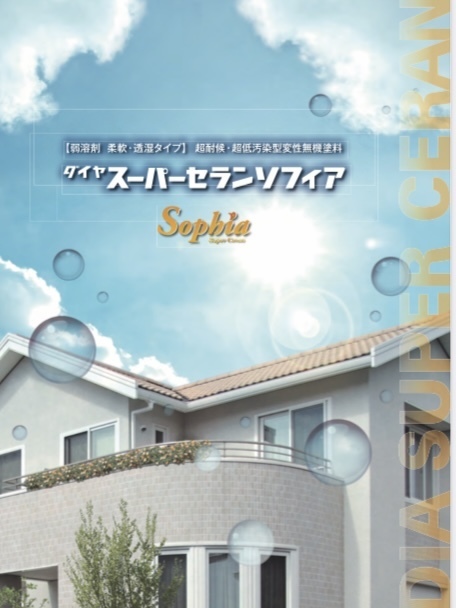 透湿性能に優れているのはダイヤスーパーセランソフィアーとフレックス。ソフィアは柔軟性と透湿性+溶剤系なので耐久性も高い。ハウスメーカーの壁には相性が良い溶剤の無機塗料です。
