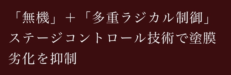 グランデ無機の厚い多重構造無機バリア層は、発生してしまったラジカルをバリア層内に封じ込めラジカルの増殖を抑え、樹脂に含まれる有機質を守ります。