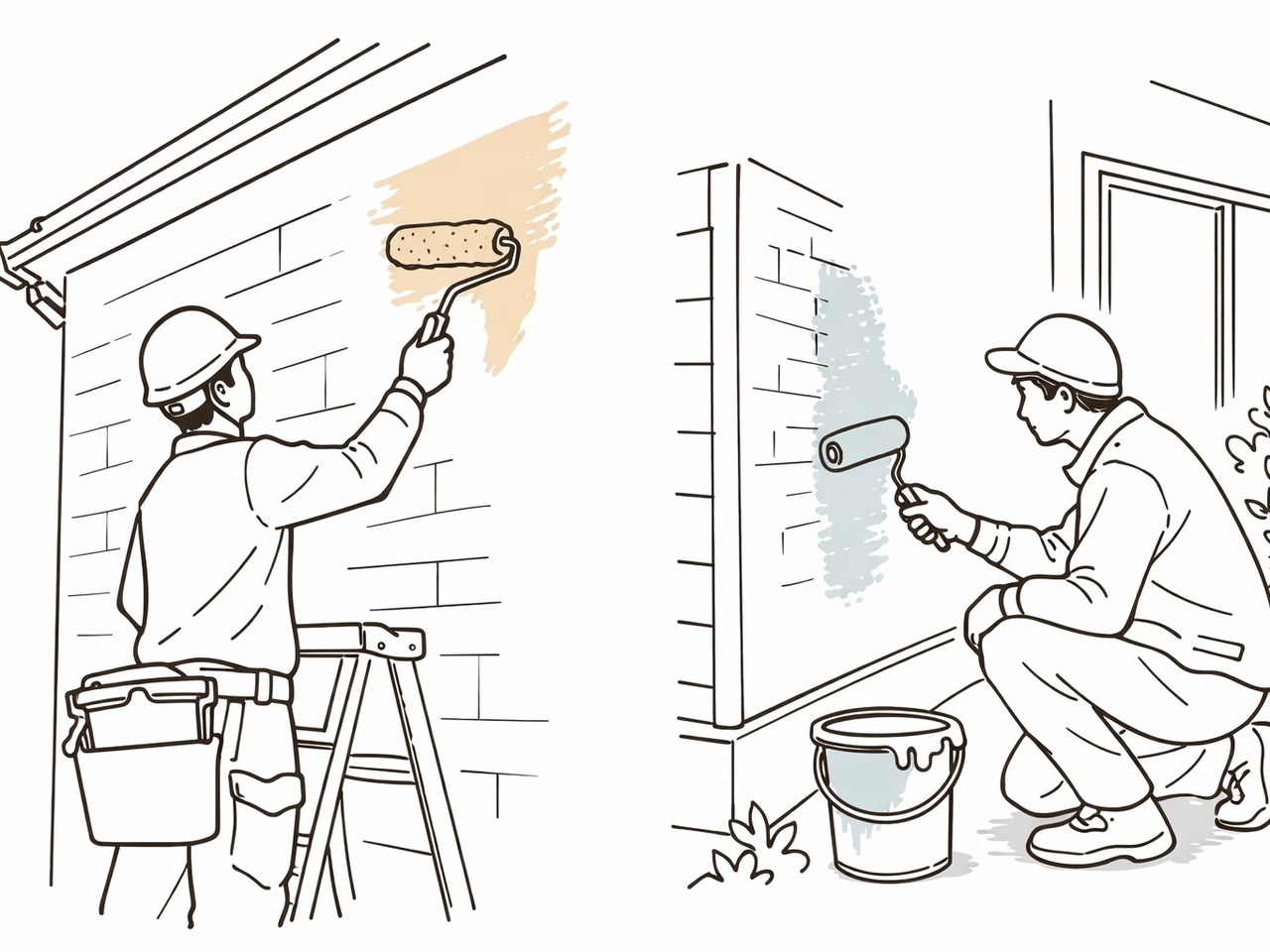 外壁材の種類や傷み具合、前回の塗料を調査し、最も密着性と耐久性が出る下塗り材を選定します。現地調査には代表が伺い長持ちする塗装の土台をしっかり整えます。
