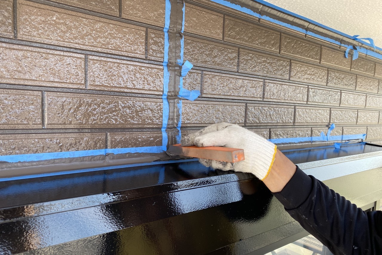塗装する前に施工し、コーキングの上から塗装することを先打ち工法と言います。