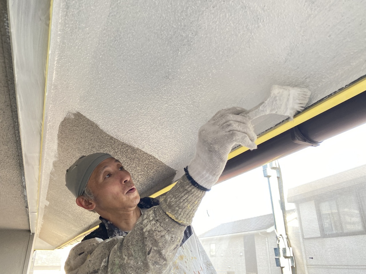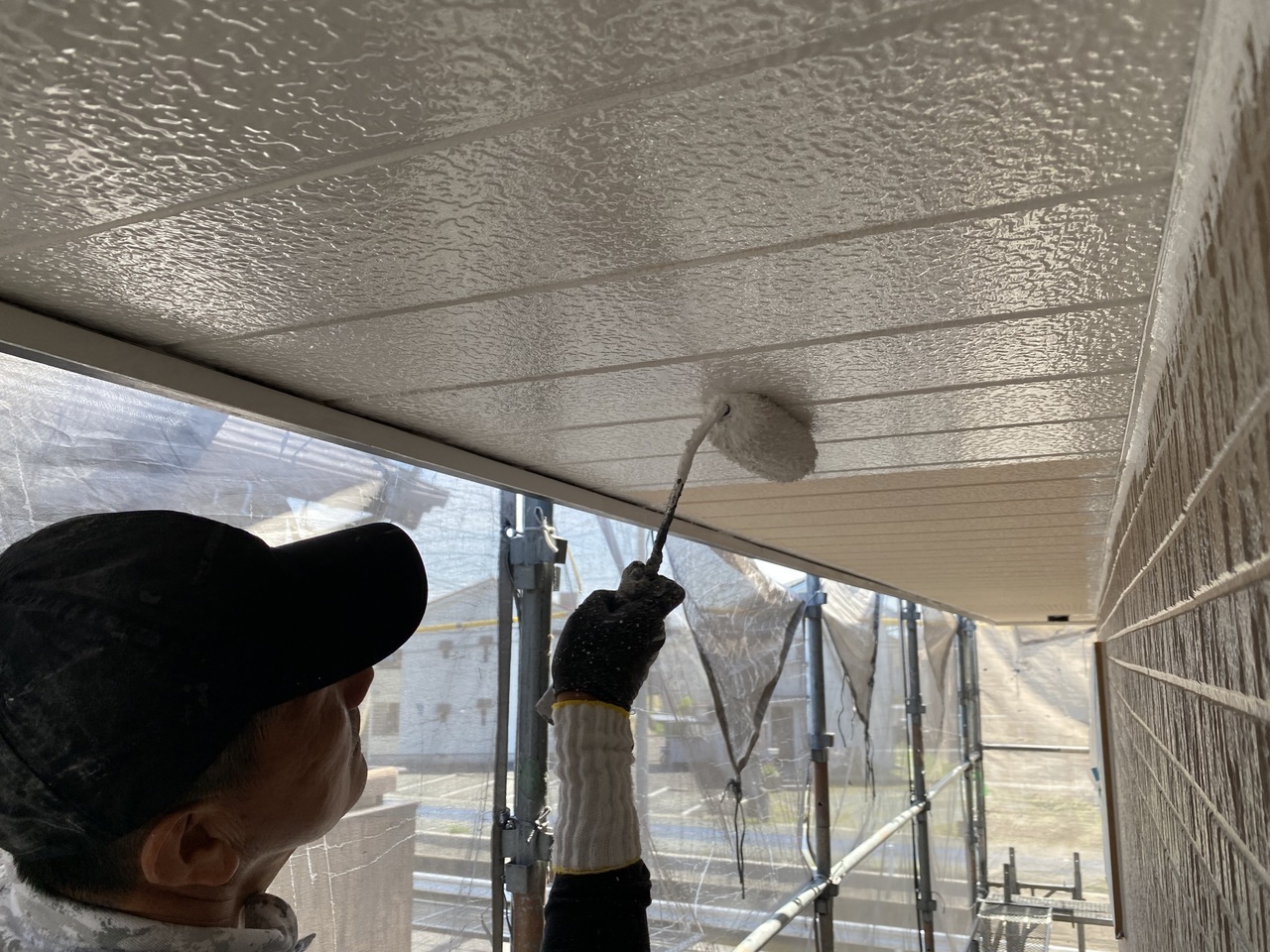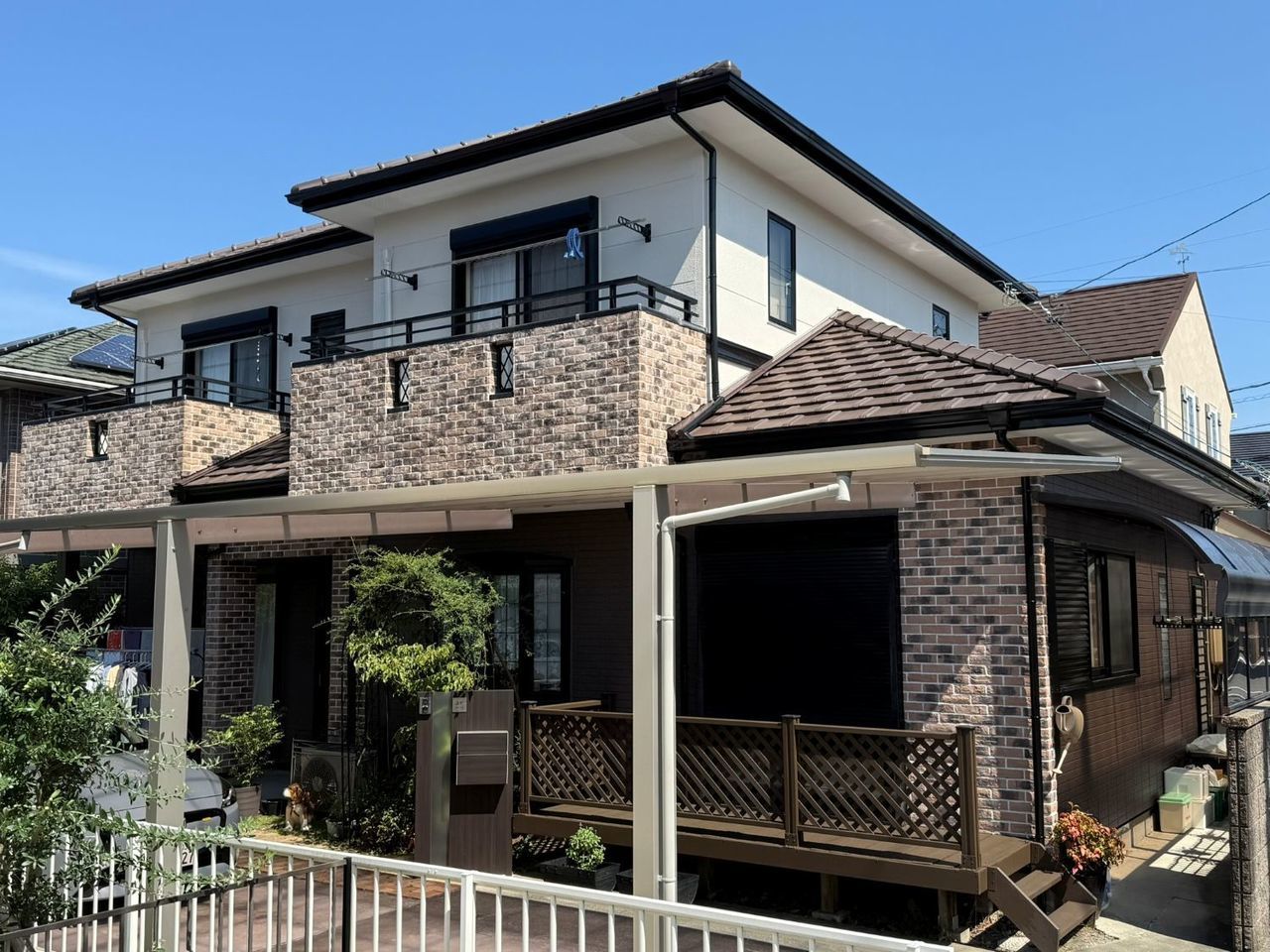15年前に弊社にて塗装工事とタイル工事を施工してくださったお客様です。この間にもトイレ工事やIH工事などなどお住まいに事は何でもご相談くださって感謝してます。今回は塗装はまだ綺麗だったのですが軒天の劣化が気になるとの事で早めの補修工事と塗装、目地補修をしました。
