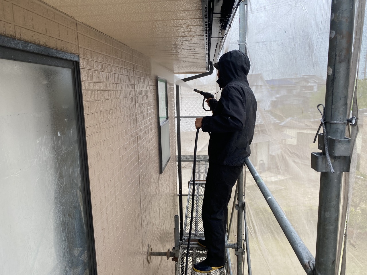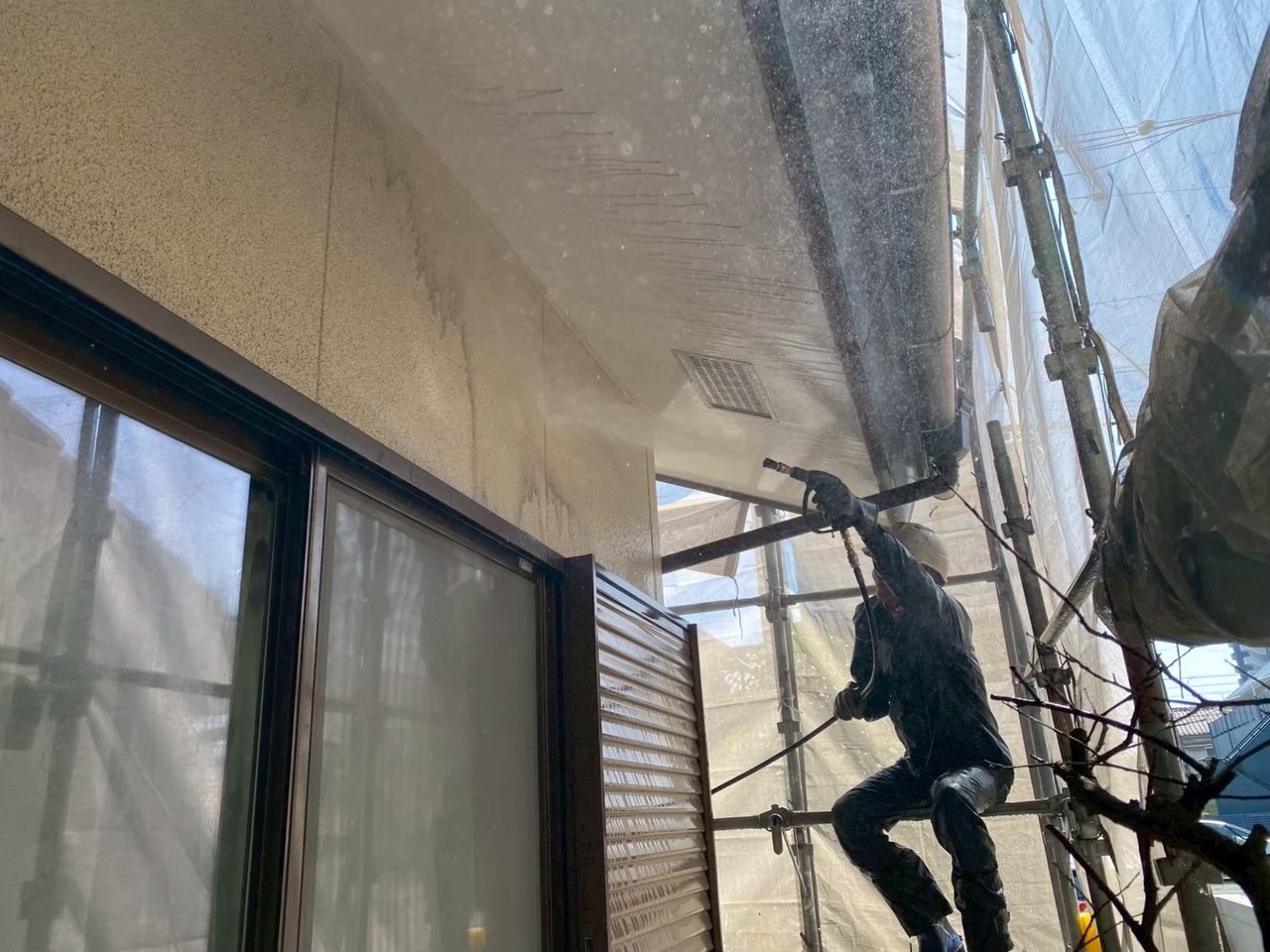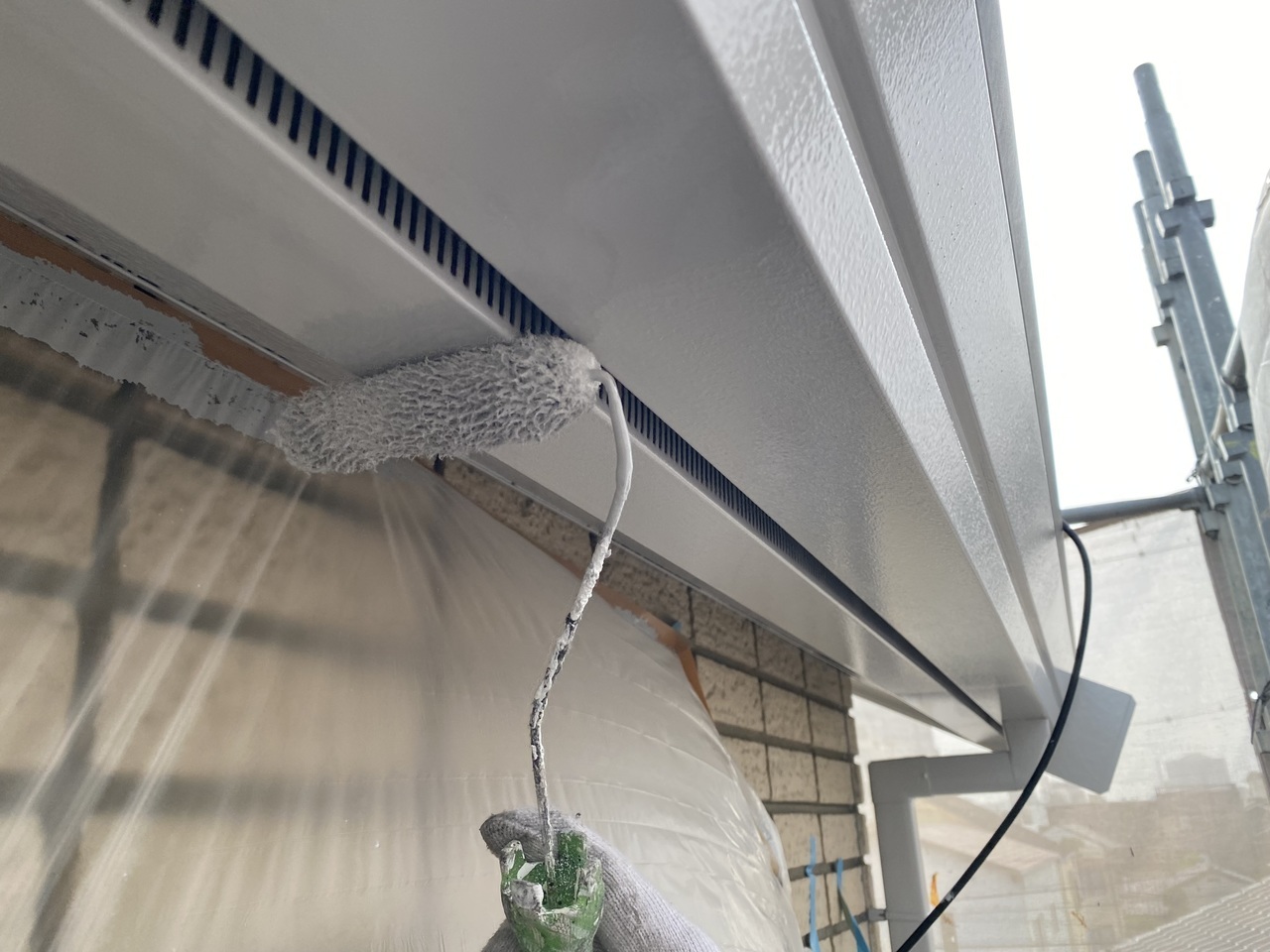 15年前に弊社にて塗装工事とタイル工事を施工してくださったお客様です。この間にもトイレ工事やIH工事などなどお住まいに事は何でもご相談くださって感謝してます。今回は塗装はまだ綺麗だったのですが軒天の劣化が気になるとの事で早めの補修工事と塗装、目地補修をしました。