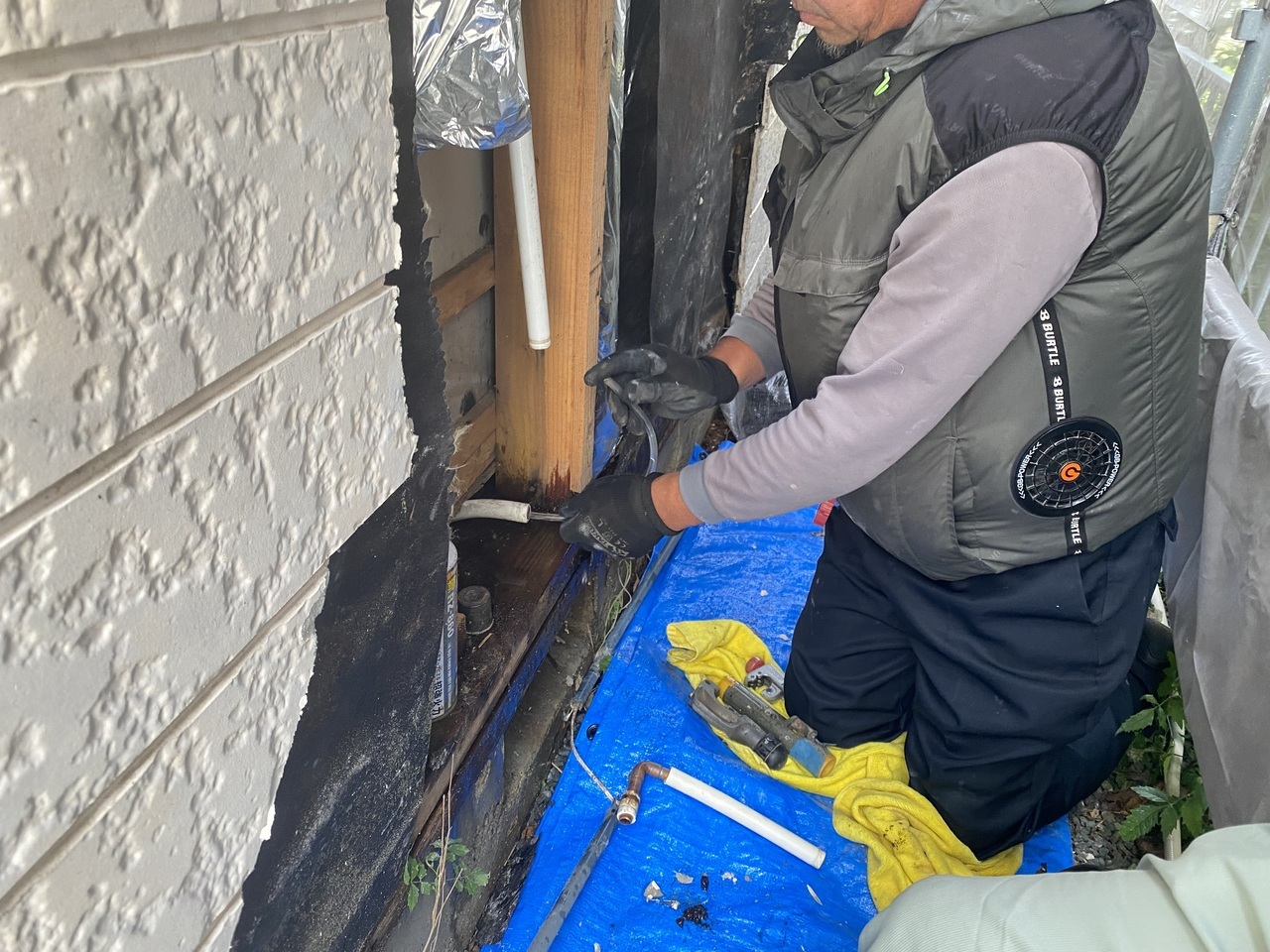 ダイワハウスさんのおお住まいです。ダイワハウスの塗装を多く手掛けていて安心な会社を探していたら弊社を見つけたとおっしゃっていました。定期的に塗装もされていますので土台の劣化がなくとても綺麗に仕上がりました。ありがとうございました!