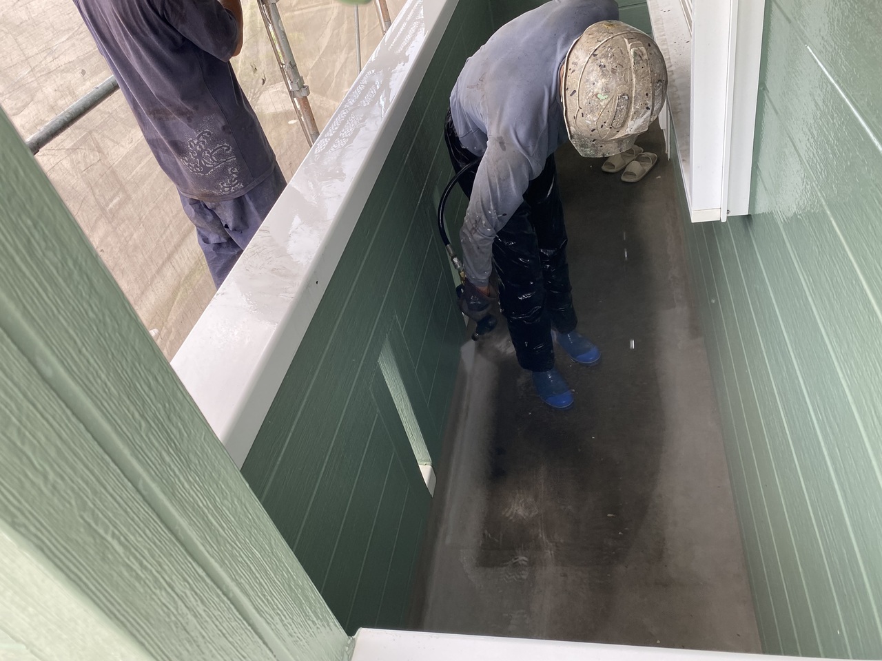 幕板の色が写真ではわかりにくいですが、薄いグリーン。よくある同じような塗装じゃ仕上ってからつまらないと。そしてアートリペインで工事するとこんなに素敵になるんだと近所の方にもわかってもらえれば、依頼が来ますよ~とおっしゃって下さいました。