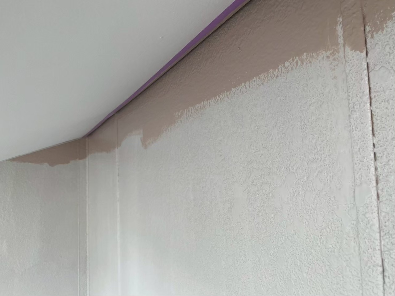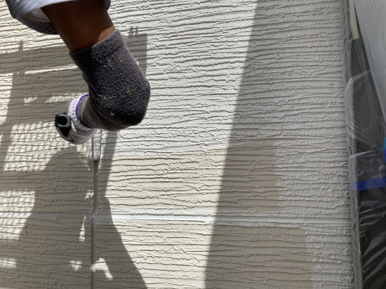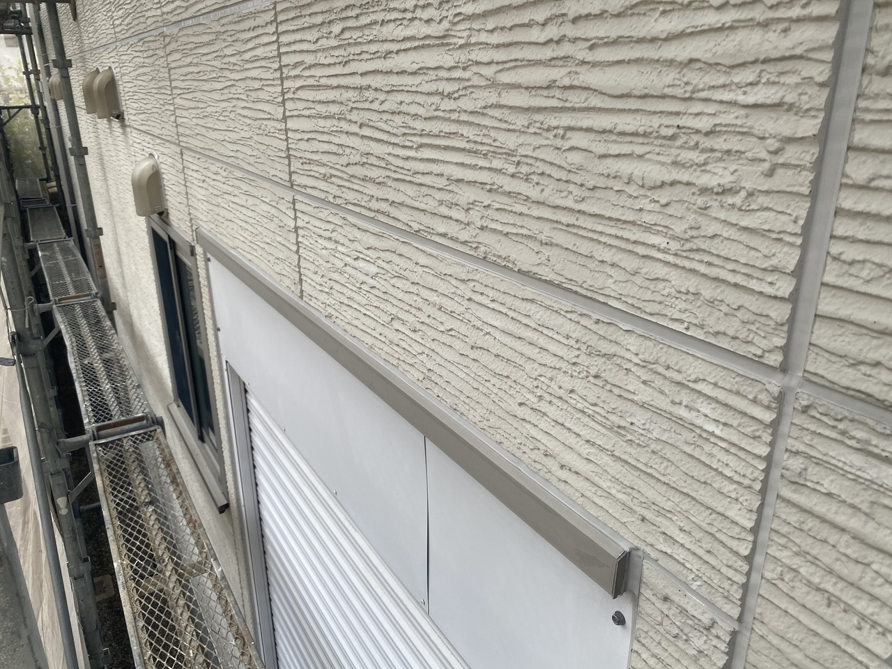 数年前にご近所様の塗装工事をさせて頂き、今回ご紹介です。シーリングと南面の塗り替え工事をすることになりました。3面はシーリング以外の劣化が少なく打ちっぱなし雰囲気を壊したくないと言うことで南面のみ塗装しました。今後ともよろしくお願いいたします。