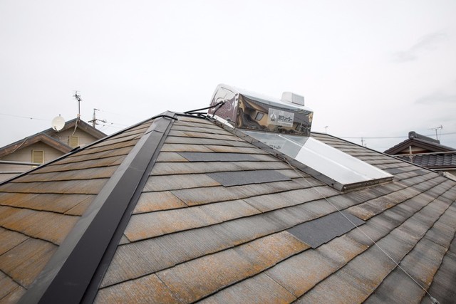 20年ほど前にのせた温水器も壊れてしまいそのままの状況で放置してある方が多いと思います。勾配によりますが足場が無くても出来ますのでご連絡して下さい。