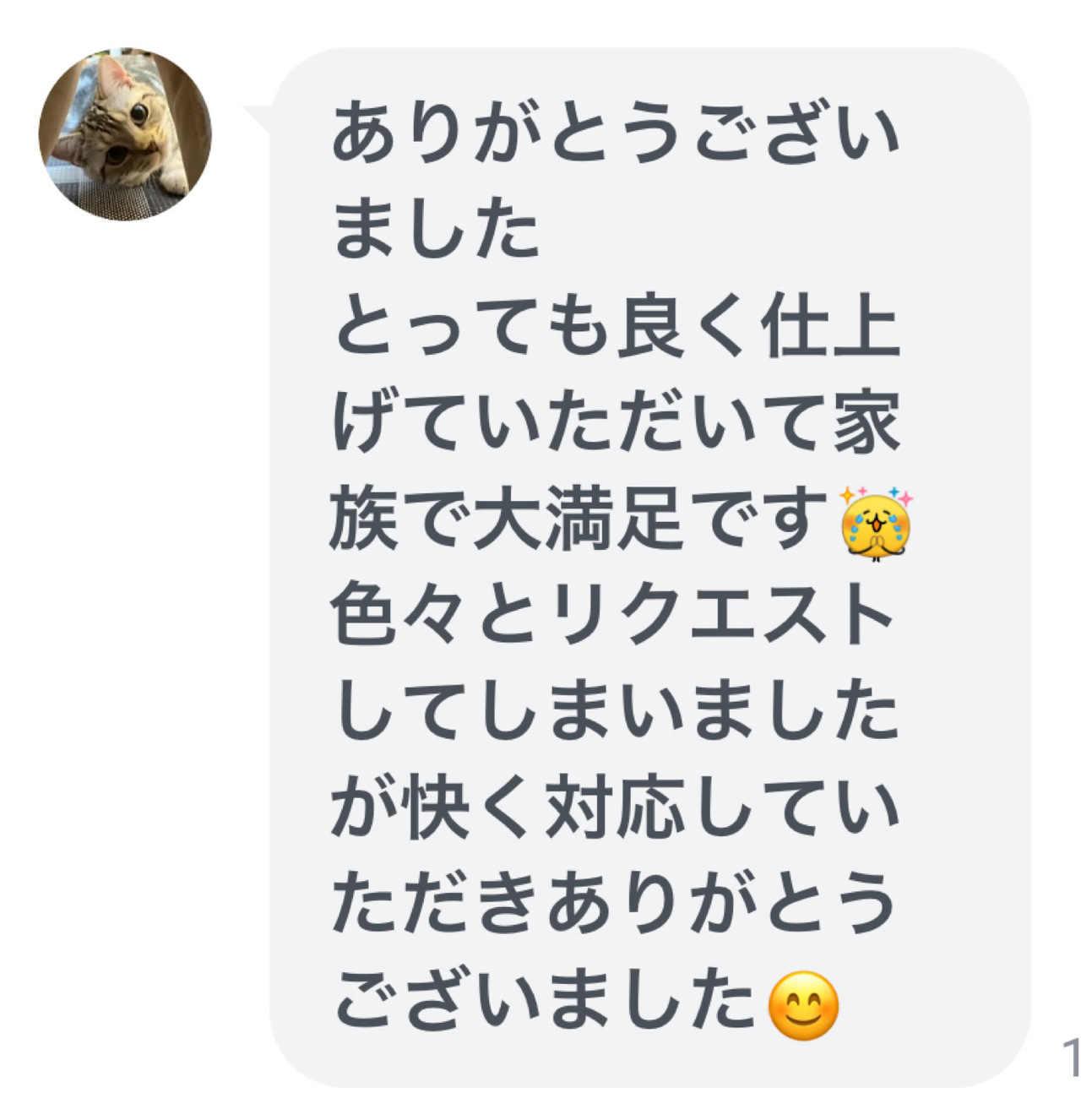 いろいろ工夫してくださったり、とても丁寧に仕上げてくださりありがとうございました。
