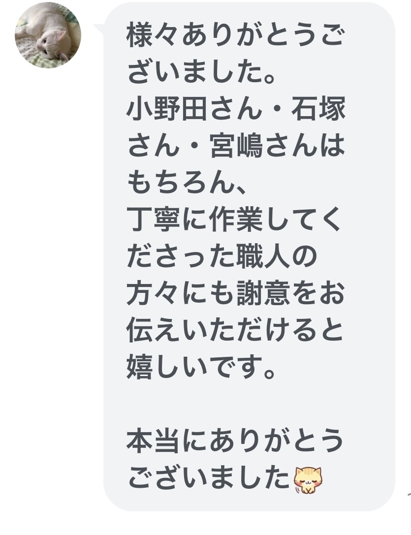 ご家族の皆様があたたかくて、とても気持ちよく仕事が出来たと職人一同も話していました。