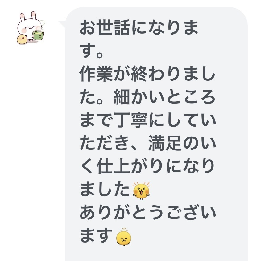 作業が終わりました。細かいところまで丁寧にしていただき、満足のいく仕上がりになりました。