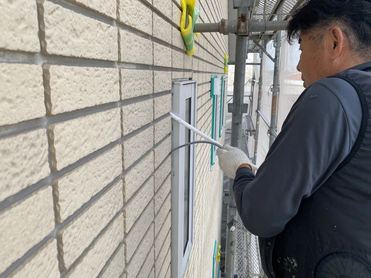古くなったコーキングを撤去してから新しいコーキングを打ちます。